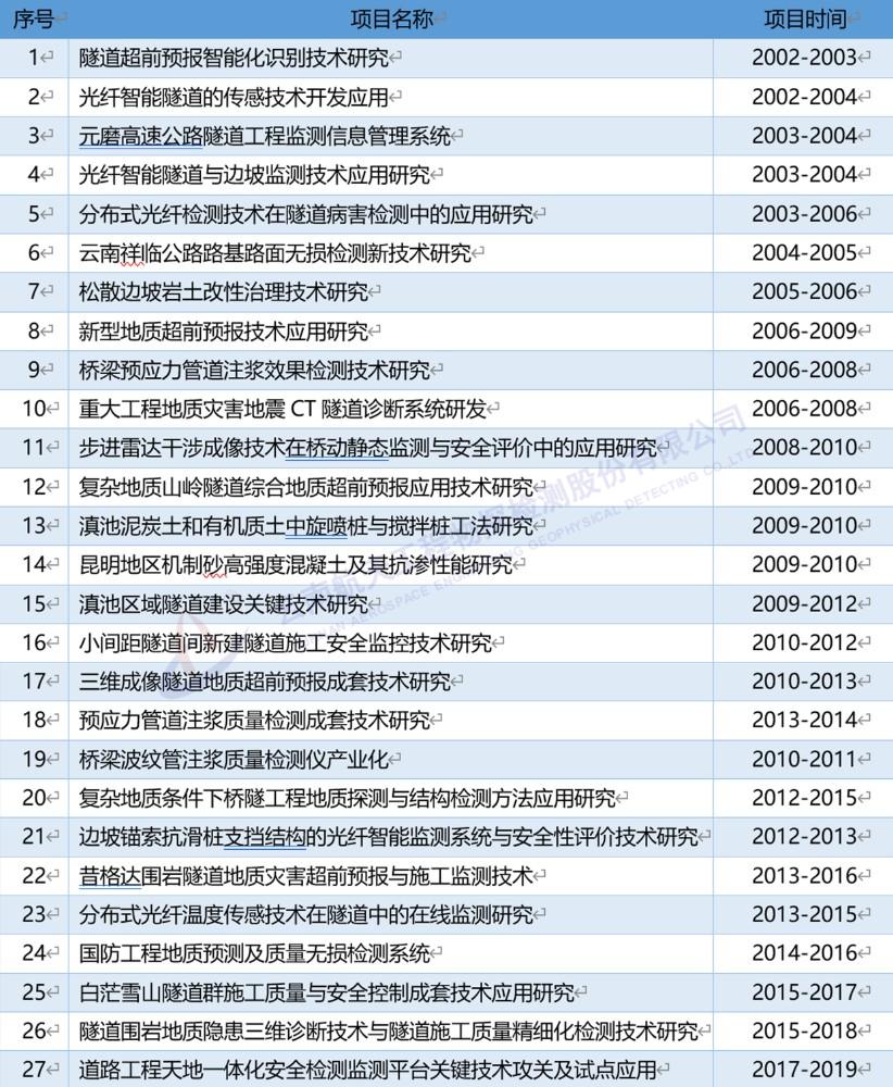 与中科院地质与地球物理研究所、中科院测量与地球物理研究所、中国地质大学(武汉)等建立了产学研合作关系,拥有较强的科研实力,可为建设业主提供技术攻关、科研咨询服务。