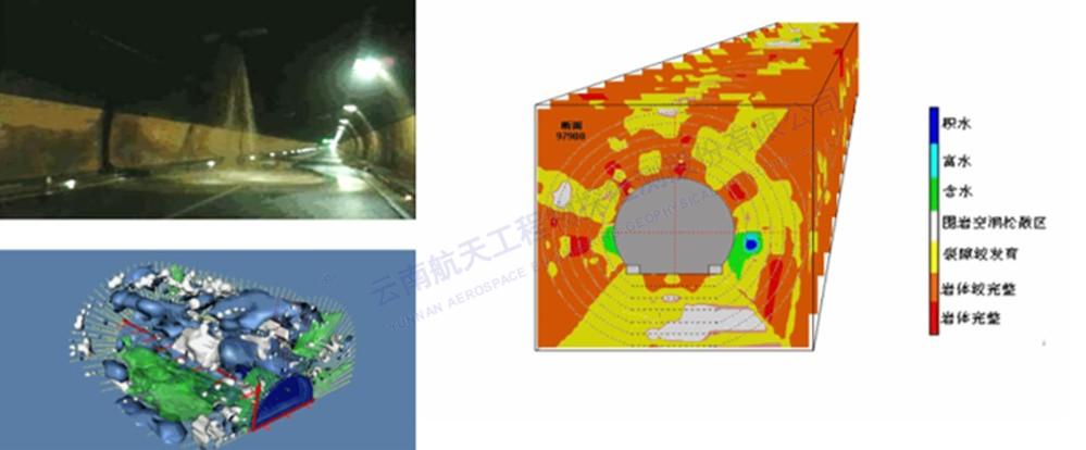 针对施工隧道塌方冒顶、突泥涌水,运营隧道渗漏水等病害,可采用地质雷达三维探测、三维高密度电法、地震成像等技术,实现隧道病害三维诊断,分析病害产生原因,为处治提供准确信息。